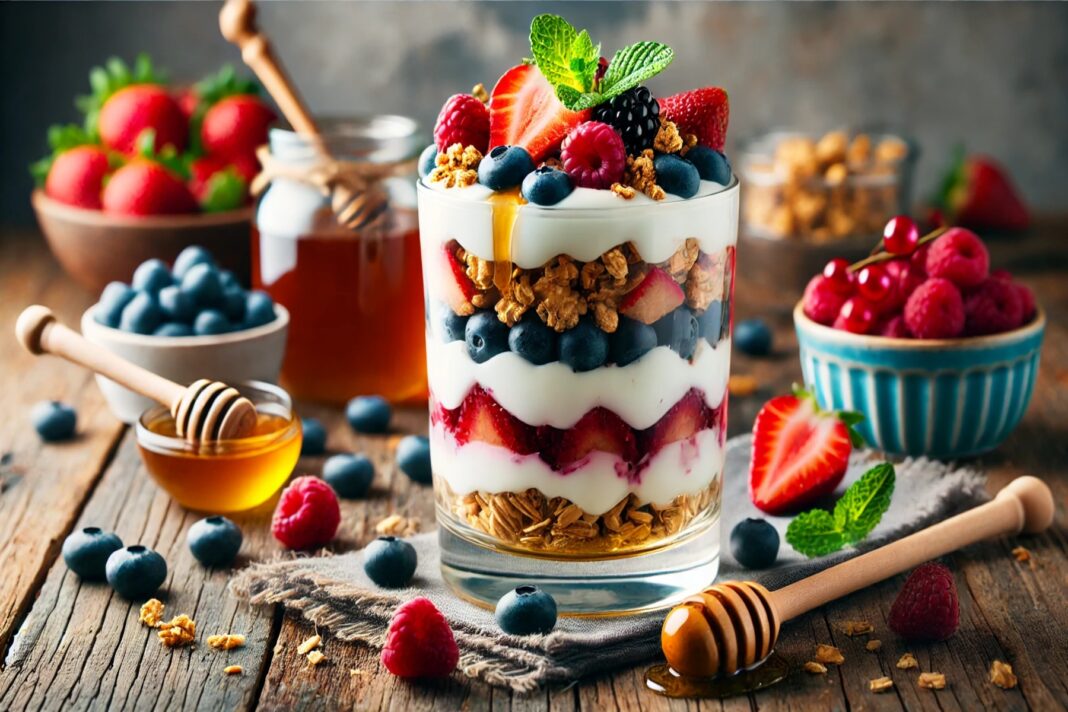 Τα παρφέ γιαουρτιού είναι ένας απολαυστικός και θρεπτικός τρόπος για να ξεκινήσετε τη μέρα σας ή να τα απολαύσετε ως μεσημεριανό σνακ. Αυτή η συνταγή συνδυάζει την κρεμώδη γεύση του γιαουρτιού με φρέσκα φρούτα, τραγανή γκρανόλα και μια νότα μελιού για γλυκύτητα. Φτιάχνεται εύκολα και προσαρμόζεται ανάλογα με τις γευστικές σας προτιμήσεις.
