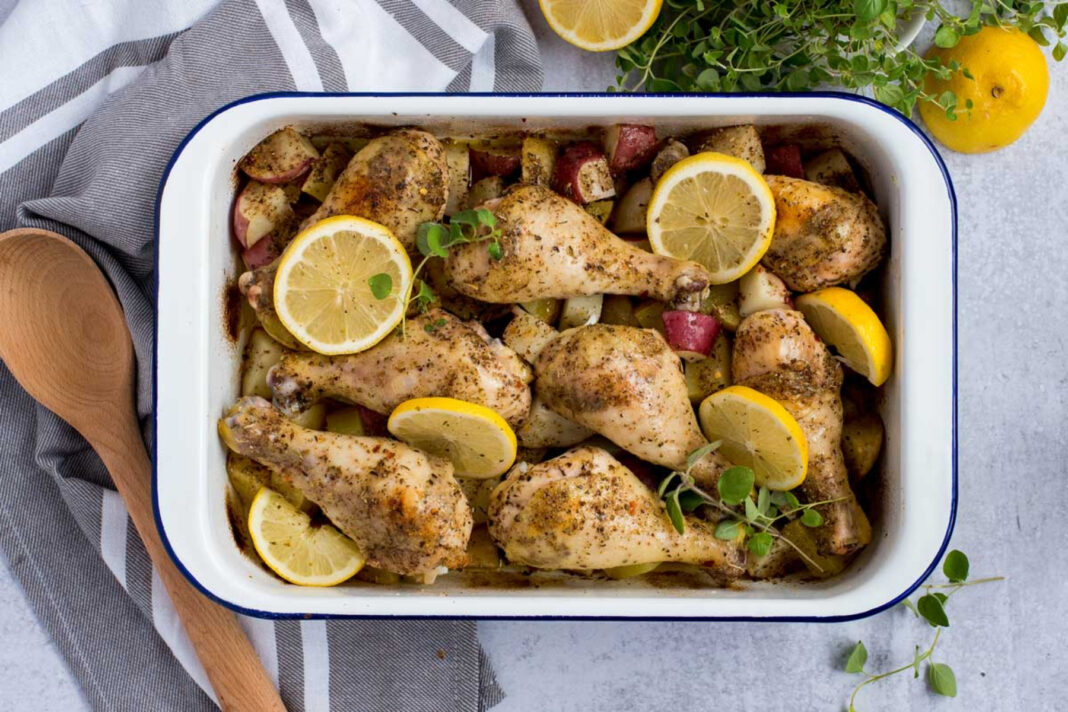 Κοτόπουλο λεμονάτο στο φούρνο με πατάτες
