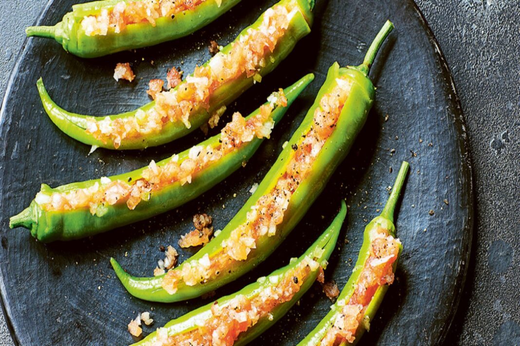 Είτε σερβίρονται ως κύριο πιάτο είτε ως γευστικό συνοδευτικό, αυτές οι πικάντικες γεμιστές πιπεριές είναι ένας γευστικός τρόπος για να απολαύσετε τη θερμότητα των πιπεριών τσίλι σε ένα απλό και χορταστικό γεύμα.