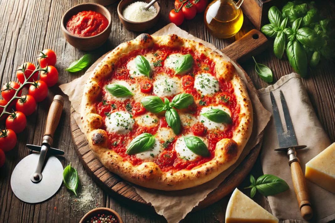 Η πίτσα έχει τις ρίζες της στην ιταλική κουζίνα και στη βασική της εκδοχή περιλαμβάνει ζύμη, σάλτσα ντομάτας και τυρί. Η ζύμη αποτελεί πηγή υδατανθράκων, οι οποίοι παρέχουν ενέργεια στον οργανισμό. Η σάλτσα ντομάτας προσφέρει αντιοξειδωτικά, όπως το λυκοπένιο, ενώ το τυρί περιέχει πρωτεΐνη και ασβέστιο, απαραίτητα για την υγεία των οστών.