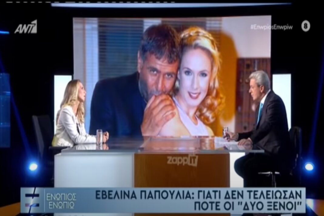 Η Εβελίνα Παπούλια ήταν καλεσμένη χτες βράδυ στο Νίκο Χατζηνικολάου και την εκπομπή Ενώπιος Ενωπίω. Εκεί μίλησε για όλους και για όλα. Αναφέρθηκε στην τρυφερή σχέση της με την κόρη της, Αφροδίτη Λιάντου, η οποία πρωταγωνιστεί στη Γη της Ελιάς. Επίσης έκανε μια αναδρομή στα πρώτα χρόνια της καριέρας της, με το μπαμ που έγινε με τους Δύο Ξένους στο Mega TV. Από χορεύτρια που είχε αποφασίσει να γίνει, έκανε στροφή και διεκδίκησε τη θέση της στην υποκριτική τέχνη. Αν και ταξίδεψε στην Αμερική και θέλησε να μείνει εκεί για να εξελιχθεί επαγγελματικά, δυστυχώς η πράσινη κάρτα της δεν ανανεώθηκε και την ανάγκασε να επιστρέψει στα πάτρια εδάφη. Μοιραία πηγαίνει η συζήτηση στο Νίκο Σεργιανόπουλο, στον οποίο ακόμη αναφέρεται στον ενεστώτα. Τον αγαπά λοιπόν πολύ, τονίζει πως ήταν ευγενέστατος με τις γυναίκες και με όλους.