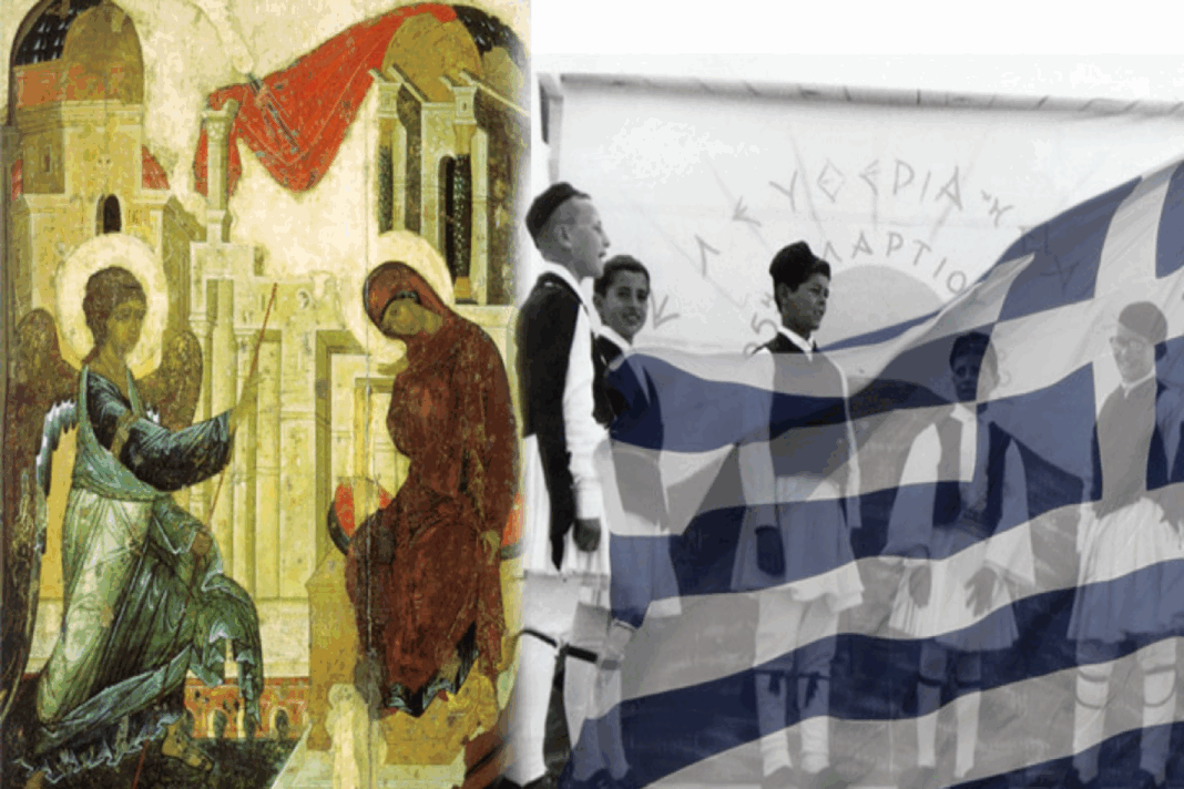 Η 25η Μαρτίου είναι διπλή γιορτή. Την 25η Μαρτίου γιορτάζουμε και τον Ελληνισμό αλλά και την Ορθοδοξία, καθώς γιορτάζουμε τον Ευαγγελισμό της Θεοτόκου και ταυτόχρονα την απελευθέρωση του Έθνους από τον Οθωμανικό ζυγό. Με την λέξη Ευαγγελισμός αναφερόμαστε στη χαρμόσυνη είδηση για τον Χριστιανισμό, της επικείμενης γέννησης του Ιησού Χριστού, που δόθηκε από τον αρχάγγελο Γαβριήλ προς τη Μαρία. Επίσης, με τον ίδιο όρο αναφερόμαστε στην εκκλησιαστική θεομητορική εορτή που τελείται την 25η Μαρτίου προς ανάμνηση του γεγονότος αυτού.