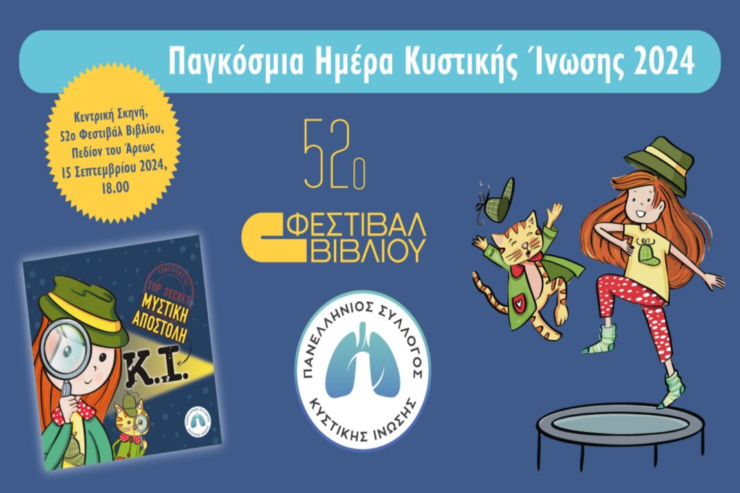 Με αφορμή την Παγκόσμια Ημέρα Κυστικής Ίνωσης σε μια καινοτόμα προσπάθεια να φωτίσει τα ζητήματα γύρω από την πιο συχνή κληρονομική νόσο, ο Πανελλήνιος Σύλλογος Κυστικής Ίνωσης και η συγγραφέας- εικονογράφος, Λιάνα Δενεζάκη, διοργανώνουν μια ξεχωριστή εκδήλωση. Η «Μυστική Αποστολή: K.I.», το πρώτο διαδραστικό παιδικό βιβλίο για την Κυστική Ίνωση στην Ελλάδα, ζωντανεύει στο 52ο Φεστιβάλ Βιβλίου με διαδραστικά παιχνίδια, δώρα και πολλές εκπλήξεις για μικρούς και μεγάλους. Η εκδήλωση θα πραγματοποιηθεί στην Κεντρική Σκηνή «Μελίνα Μερκούρη» του Φεστιβάλ Βιβλίου στην καρδιά της Αθήνας, στο Πεδίον του Άρεως, την Κυριακή, 15 Σεπτεμβρίου, στις 18.00.