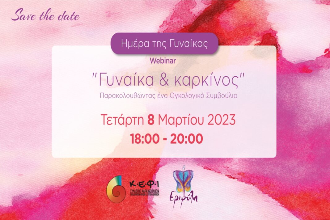 Ο Σύλλογος Καρκινοπαθών, Εθελοντών, Φίλων, Ιατρών «Κ.Ε.Φ.Ι.» Αθηνών διοργανώνει Διαδικτυακή Επιστημονική Ημερίδα με θέμα «Γυναίκα και Καρκίνος», η οποία θα πραγματοποιηθεί την Τετάρτη 8 Μαρτίου 2023 και ώρα 18:00 – 20:30. Η Ημερίδα, φέτος, θα έχει τη μορφή ογκολογκού συμβουλίου, όπου καταξιωμένοι ιατροί που συνήθως απαρτίζουν ένα ογκολογικό συμβούλιο θα μας δείξουν πως