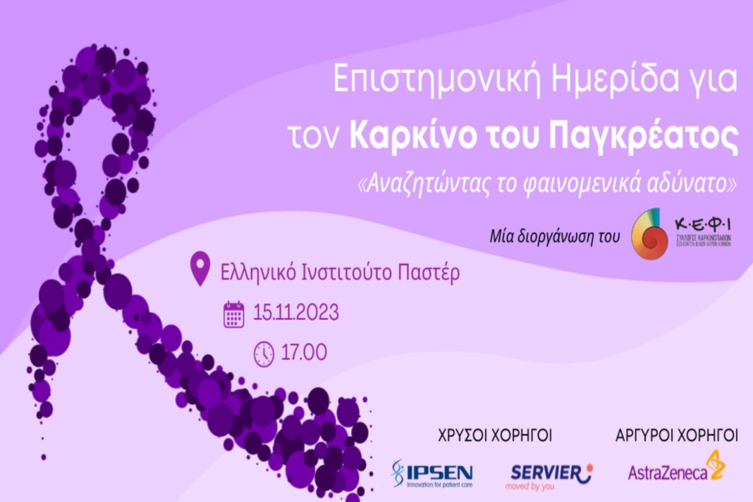 Ο Σύλλογος Καρκινοπαθών, Εθελοντών, Φίλων, Ιατρών «Κ.Ε.Φ.Ι.» Αθηνών διοργάνωσε με επιτυχία την Επιστημονική Ημερίδα με θέμα «ΠΑΓΚΟΣΜΙΑ ΗΜΕΡΑ ΓΙΑ ΤΟΝ ΚΑΡΚΙΝΟ ΤΟΥ ΠΑΓΚΡΕΑΤΟΣ – Αναζητώντας το φαινομενικά αδύνατο», η οποία πραγματοποιήθηκε την Τετάρτη 15 Νοεμβρίου 2023 το απόγευμα στο φιλόξενο χώρο του Αμφιθεάτρου του Ινστιτούτου ΠΑΣΤΕΡ, όπου συμμετείχαν καταξιωμένοι ιατροί και άλλοι επιστήμονες υγείας καθώς και ασθενείς με καρκίνο παγκρέατος και φροντιστές, ενώ μεταδόθηκε και live streaming μέσω του facebook του Συλλόγου https://www.facebook.com/skkefi.