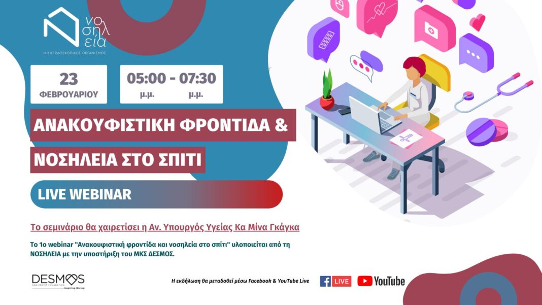 https://www.facebook.com/nosilia.org.gr/live & https://www.youtube.com/channel/UC3pTk0W1_rV2-Ll3TlgaUsQ. - Το webinar υλοποιείται στο πλαίσιο του Προγράμματος «Ανακουφιστική Φροντίδα στο σπίτι» και υποστηρίζεται από το ΜΚΣ ΔΕΣΜΟΣ.