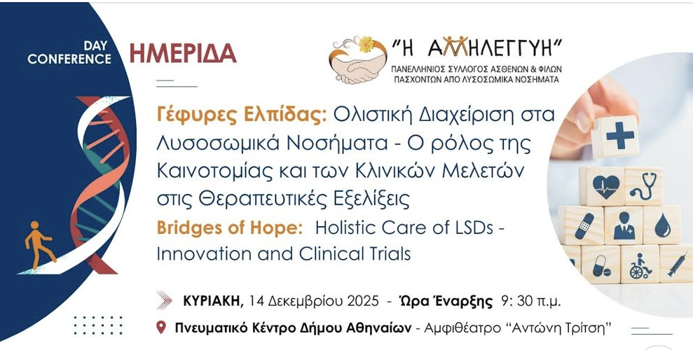 Η εκδήλωση φιλοδοξεί να αποτελέσει μια Γέφυρα Ελπίδας μεταξύ επιστημονικής κοινότητας, ασθενών και κοινωνίας, αναδεικνύοντας πρακτικές, λύσεις και μελλοντικές προοπτικές για τα λυσοσωμικά νοσήματα.