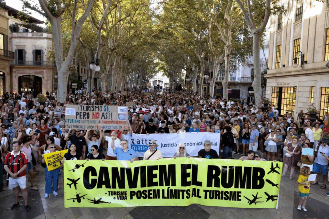 Tα πανό των κατοίκων της Πάλμα στη Μαγιόρκα έγραφαν: «Ο παράδεισός σας είναι ο εφιάλτης μας». Οι κάτοικοι του νησιού διαδήλωσαν την Κυριακή το βράδυ ενάντια στον υπερτουρισμό. Η οργάνωση «Λιγότερος τουρισμός, περισσότερη ζωή» που διοργάνωσε την κινητοποίηση ζητά τη θέσπιση ορίων στον αριθμό των επισκεπτών. Οι διαδηλωτές, κρατώντας μοντέλα αεροπλάνων και κρουαζιερόπλοιων, πραγματοποίησαν πορεία στους δρόμους της πρωτεύουσας του νησιού με αφίσες που έγραφαν «Σταματήστε τα ιδιωτικά αεροσκάφη» και «Όχι στον υπερτουρισμό». Σύμφωνα με την αστυνομία, στη διαδήλωση συμμετείχαν περίπου 20.000 άτομα, ενώ οι διοργανωτές ανέφεραν 50.000. Παρόμοιες κινητοποιήσεις πραγματοποιήθηκαν και σε άλλα νησιά των Βαλεαρίδων.