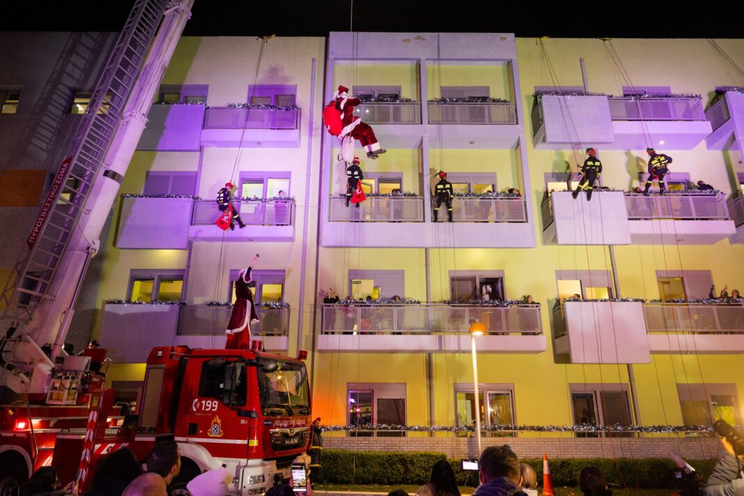 Η συγκεκριμένη Χριστουγεννιάτικη εκδήλωση πραγματοποιείται με πρωτοβουλία του Πυροσβεστικού Σώματος και οι «ιπτάμενοι» πυροσβέστες είναι μέλη της Ορειβατικής Ομάδας Έρευνας Διάσωσης της 1ης Ε.Μ.Α.Κ.