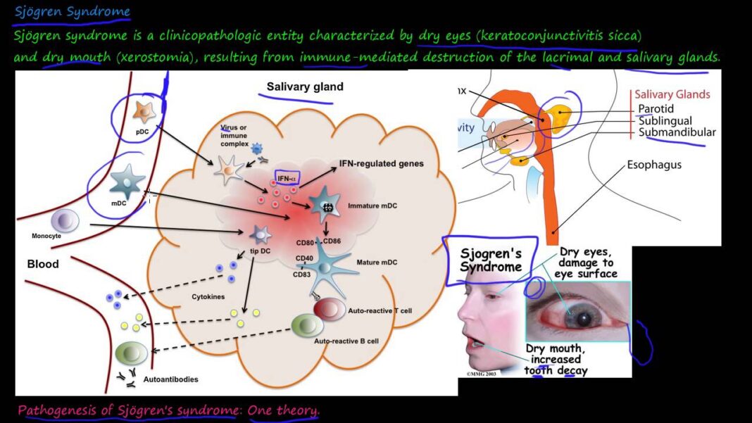 Περισσότερο από το 85% των συμμετεχόντων στη μελέτη ανέφεραν ξηροστομία ή ξηροφθαλμία, αλλά οι συμμετέχοντες με SS ήταν πολύ πιο πιθανό να έχουν θετικά αντι-SSA αντισώματα, θετικό ρευματοειδή παράγοντα, τίτλο αντιπυρηνικών αντισωμάτων της τάξης του 1: 320 ή μεγαλύτερο, υπεργαμμασφαιριναιμία, και εστιακή λεμφοκυτταρική σιελαδενίτιδα.
